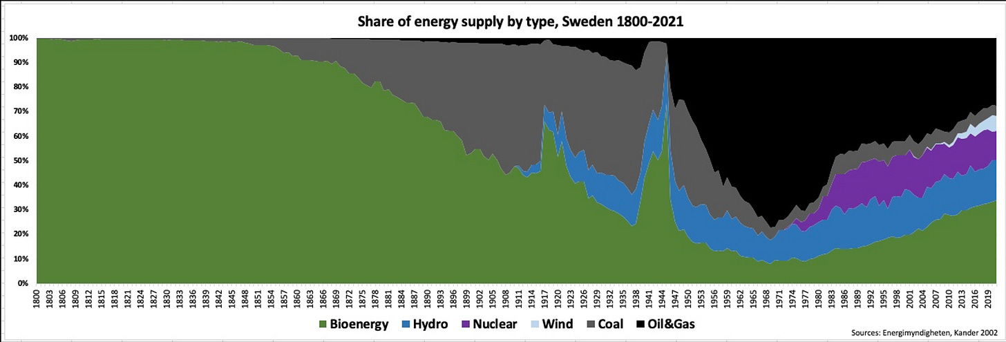 It started with the oil crisis in the 1970s when Sweden was one of the most fossil-dependent countries in the world. As the price of oil skyrocketed, politics quickly turned to new solutions (not unlike the recent situation when blending requirements led to higher fuel prices). The first solution was nuclear energy which provided reliable, cheap and fossil-free electricity - though the climate impact wasn’t really part of the play at the time.